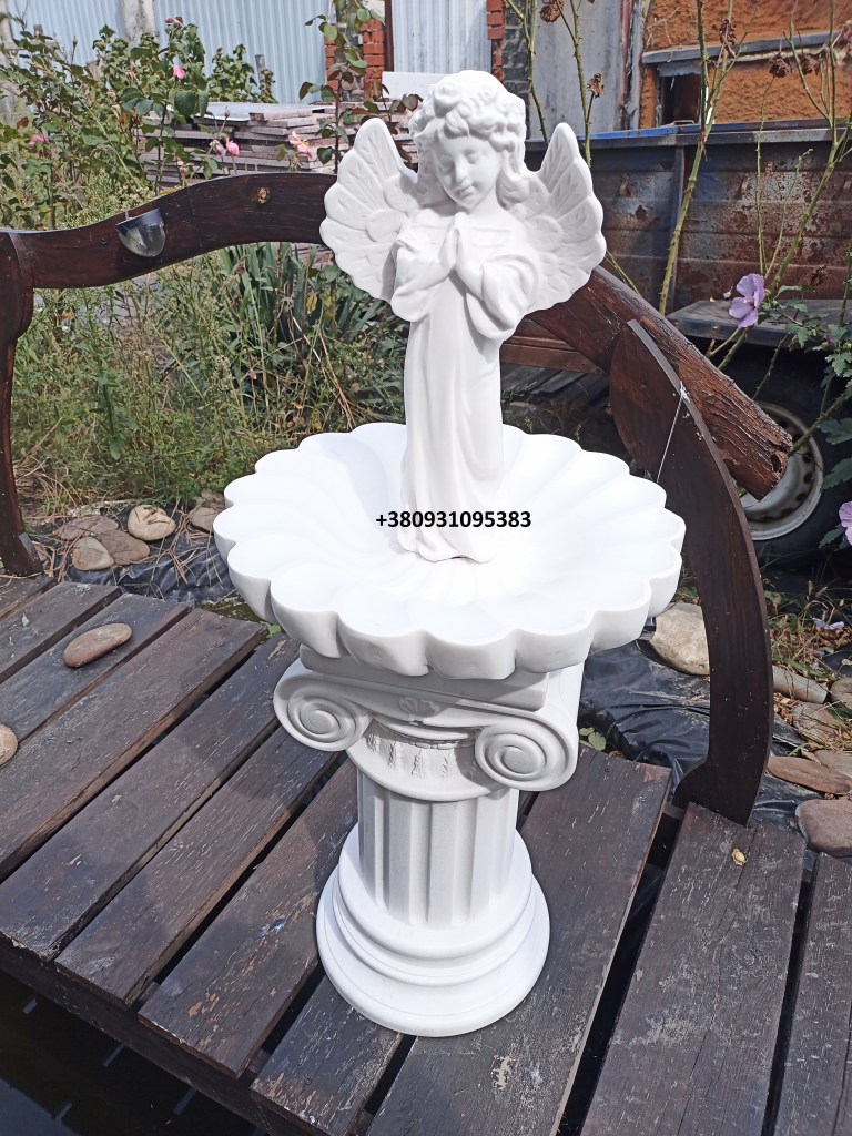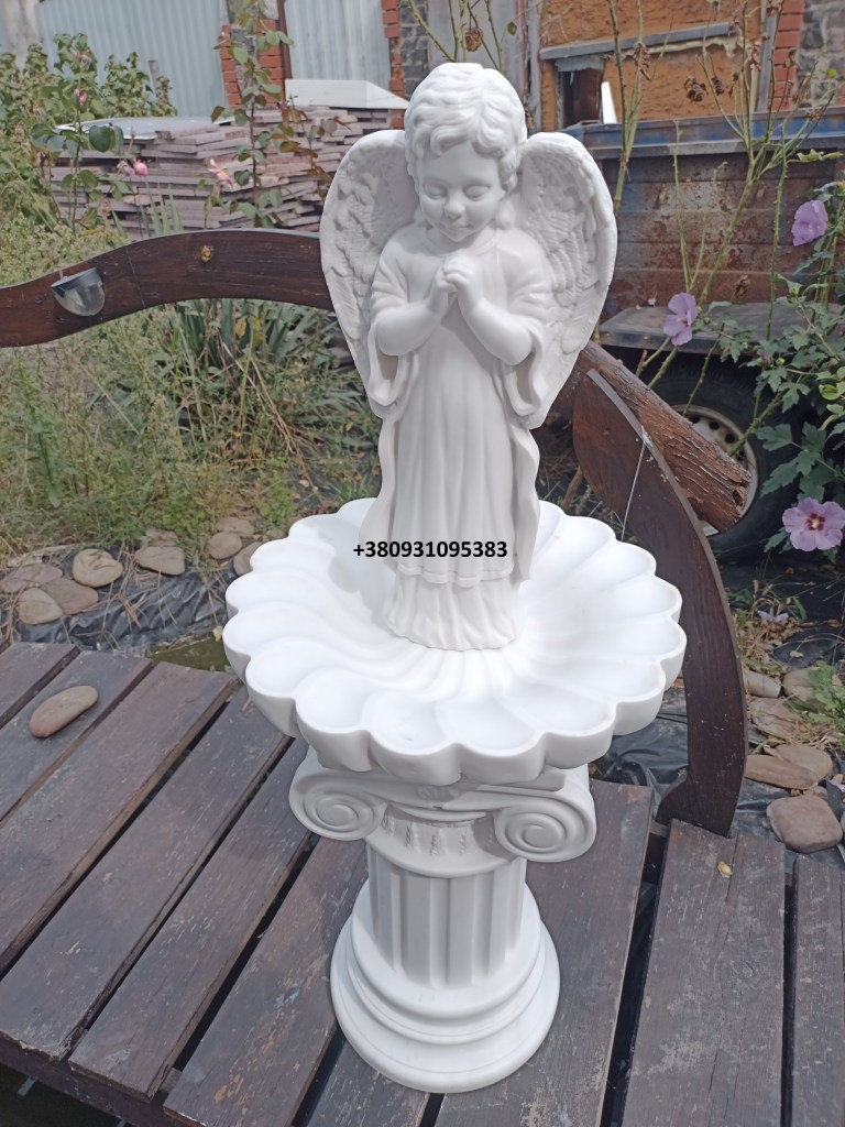 Фонтан з білого мармуру з ангелом