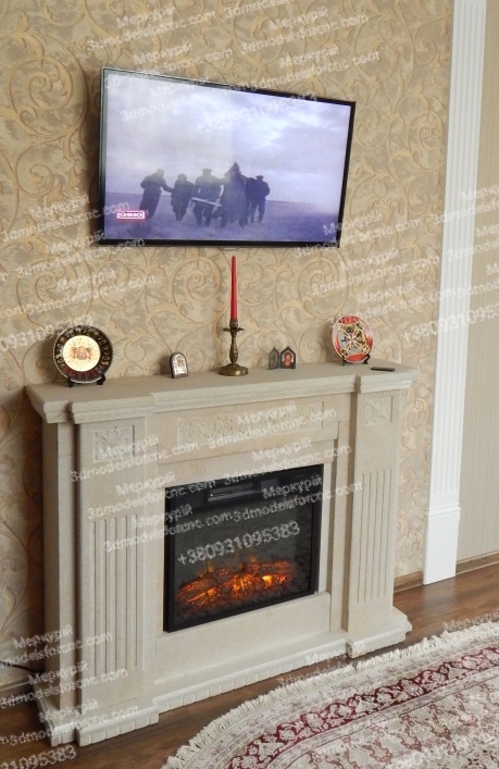 Fireplace made of marble, granite, sandstone.